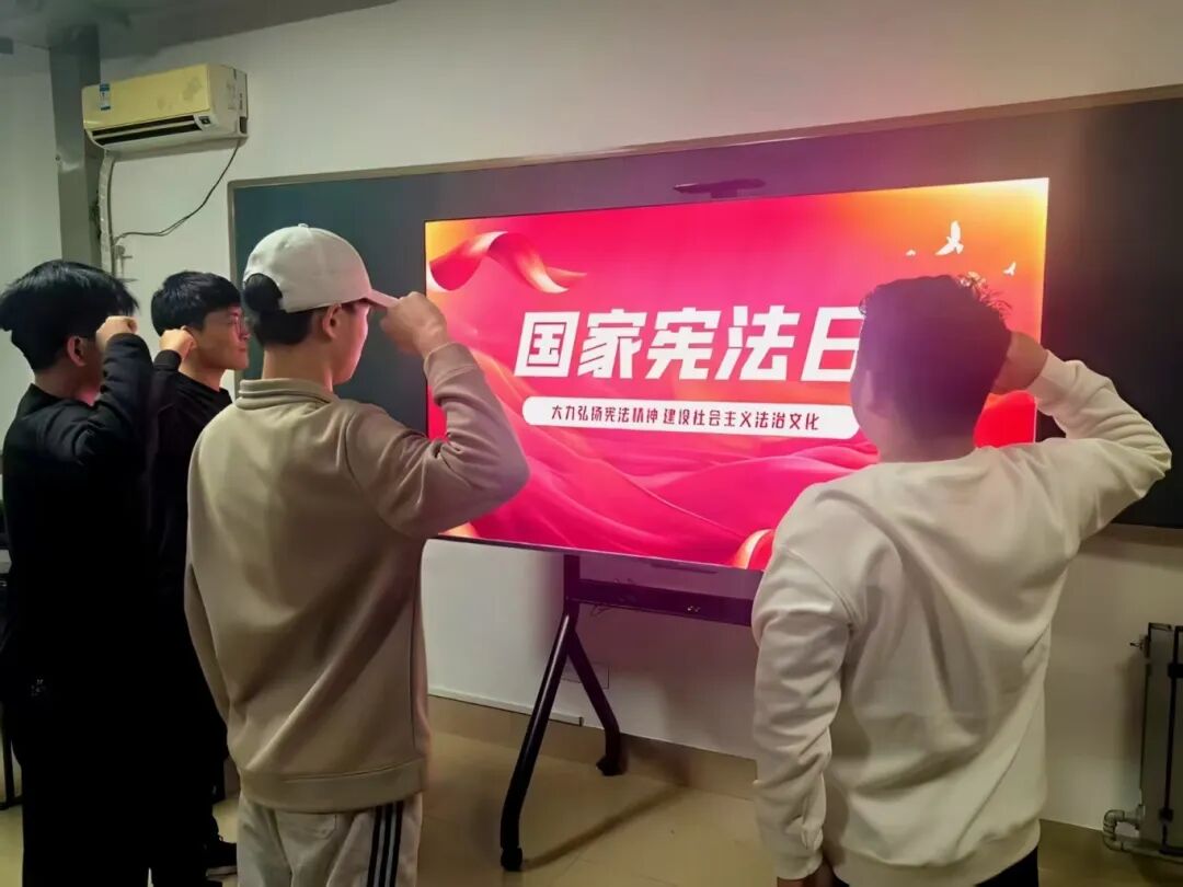 以仪式为媒,淬炼坚定法治信仰。鲜红横幅上,“弘扬宪法精神 维护宪法权威 建设法治中国”熠熠生辉,参与者落笔签名,以行动传递敬畏;庄严宣誓仪式上,学子身着正装、高举右拳,字字铿锵许下忠诚承诺,让宪法精神融入血脉;创意板报与法治书画活动中,学子挥动画笔,将法治理念转化为生动图文,让宪韵在笔墨间传递。
