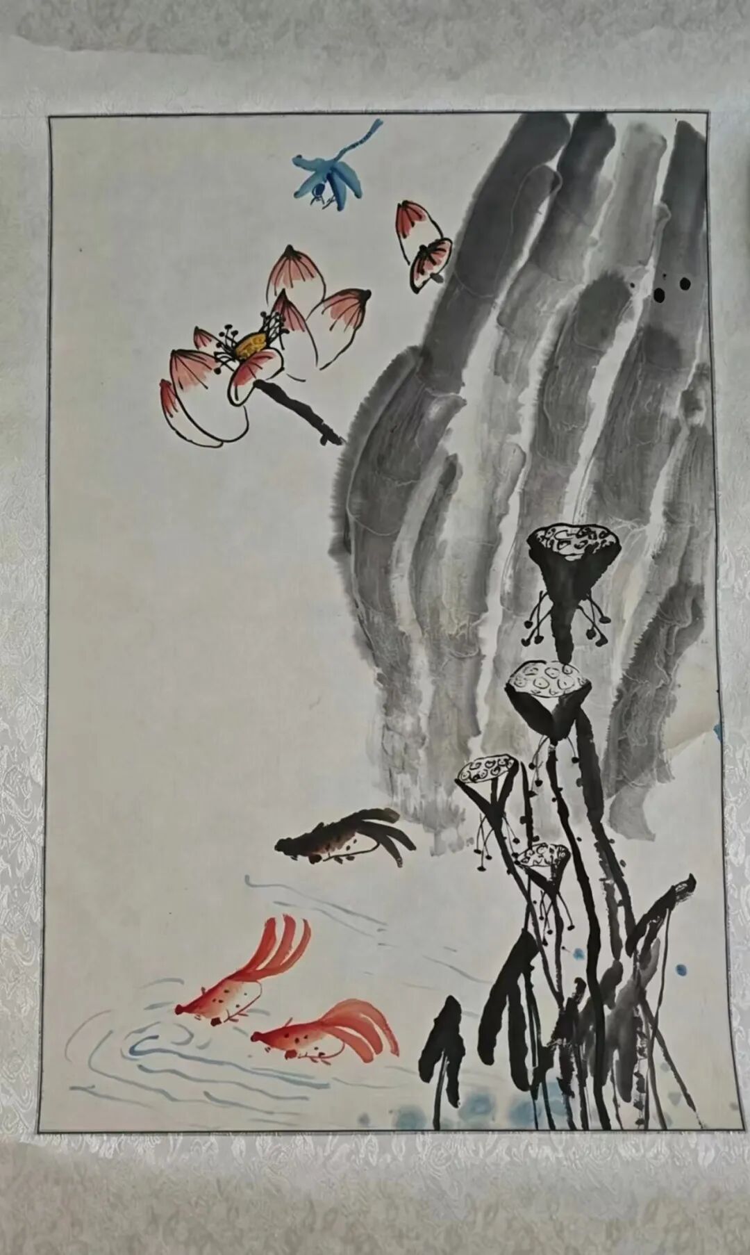 学生们以 “莲” 喻 “廉”,用写意笔墨绘就荷花亭亭、清莲映水的雅致景致:有的以浓墨铺就阔大荷叶,以淡彩晕染粉嫩莲瓣,衬以枝头栖鸟,尽显清逸高洁;有的以泼墨写就荷风阵阵,缀以灵动游鱼、翩跹蜻蜓,于笔墨间传递 “出淤泥而不染” 的廉洁风骨。