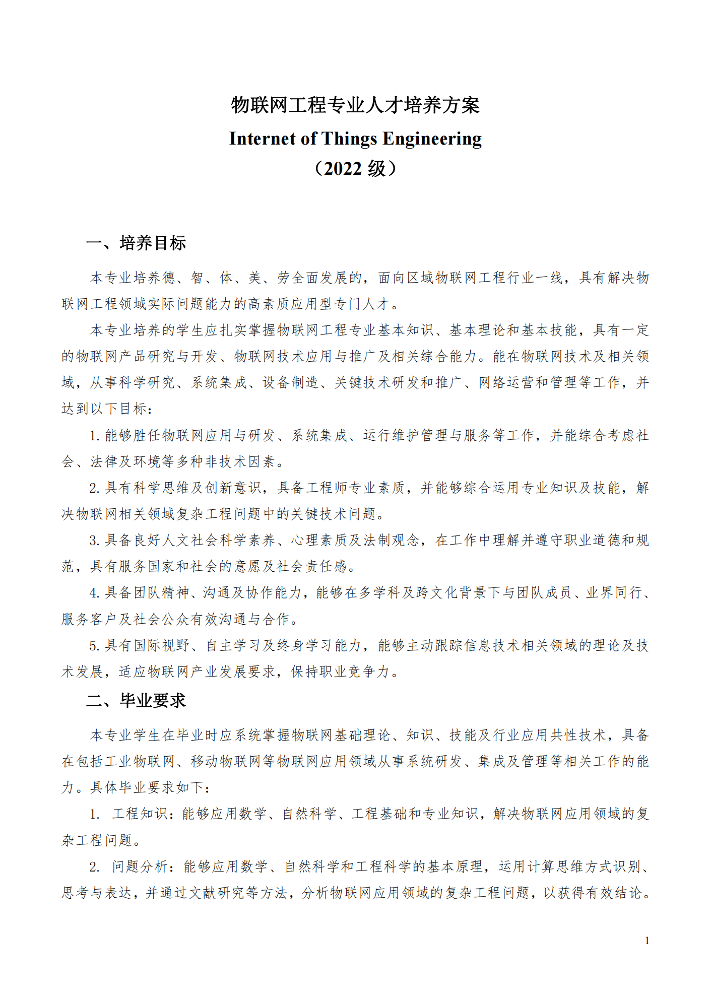 物联网工程专业人才培养方案 Internet of Things Engineering (2022 级)