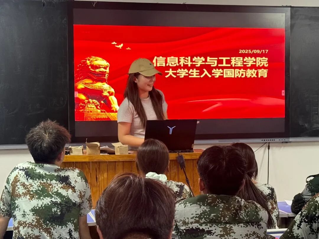 为厚植新生国防情怀、筑牢校园安全防线,信息科学与工程学院为 2025 级新生开展系列国防教育活动,将迷彩青春与责任担当相连。新生在实践中深化国防安全认知,为成长为信息领域栋梁打下基础。
