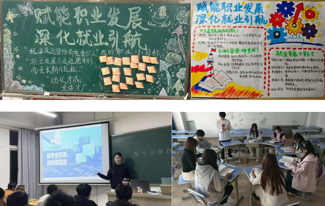 系列活动在“粉笔描航向,就业筑基石”的板报创作中拉开帷幕。同学们热情高涨,通过巧思妙想与团队协作,将职业憧憬生动呈现,深化了对职业发展的认知。
