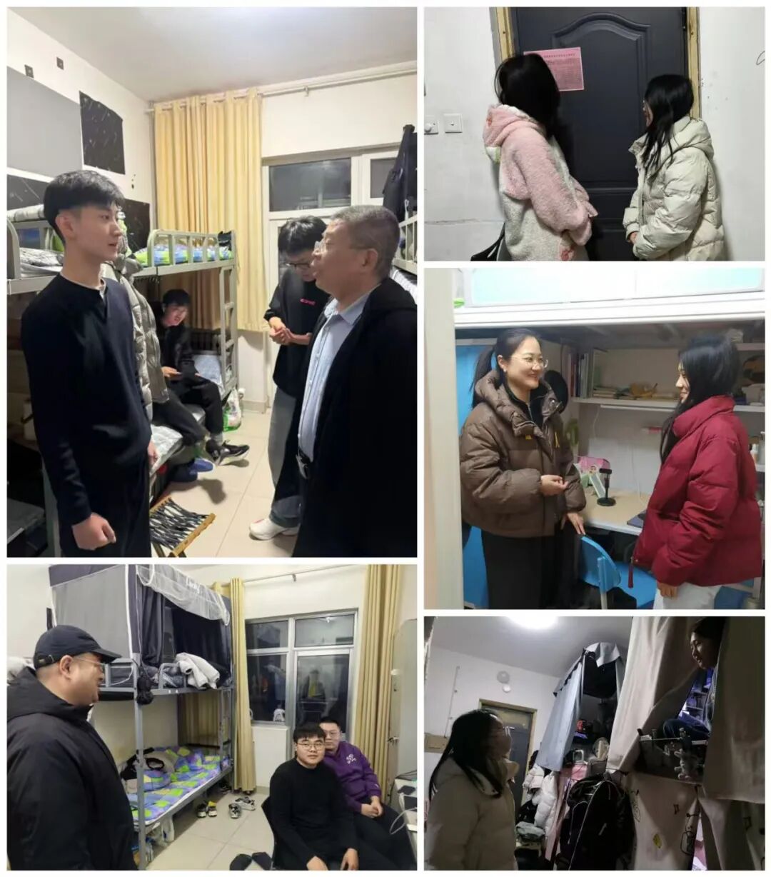 在学生宿舍,辅导员深入走访,与同学们亲切交谈,细致询问返校后的生活适应情况,倾听大家的学业规划与生活诉求,叮嘱大家注意宿舍安全,以饱满的精神状态迎接新学期。